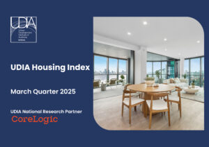 - The current UDIA Housing Index reading is 3% below the decade national average and 14% below the series peak achieved in June 2021.
